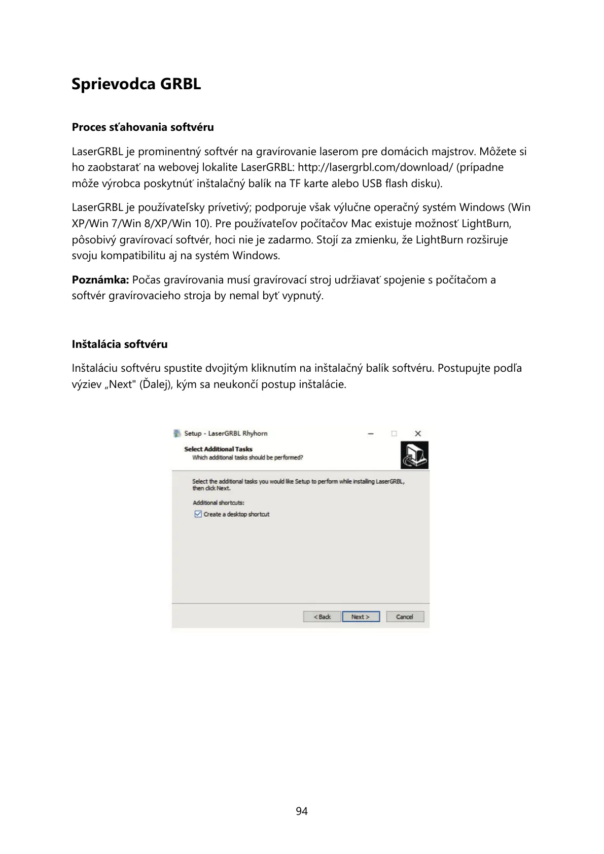 ho zaobstarať na webovej lokalite LaserGRBL: http://lasergrbl.com/download/ (prípadne