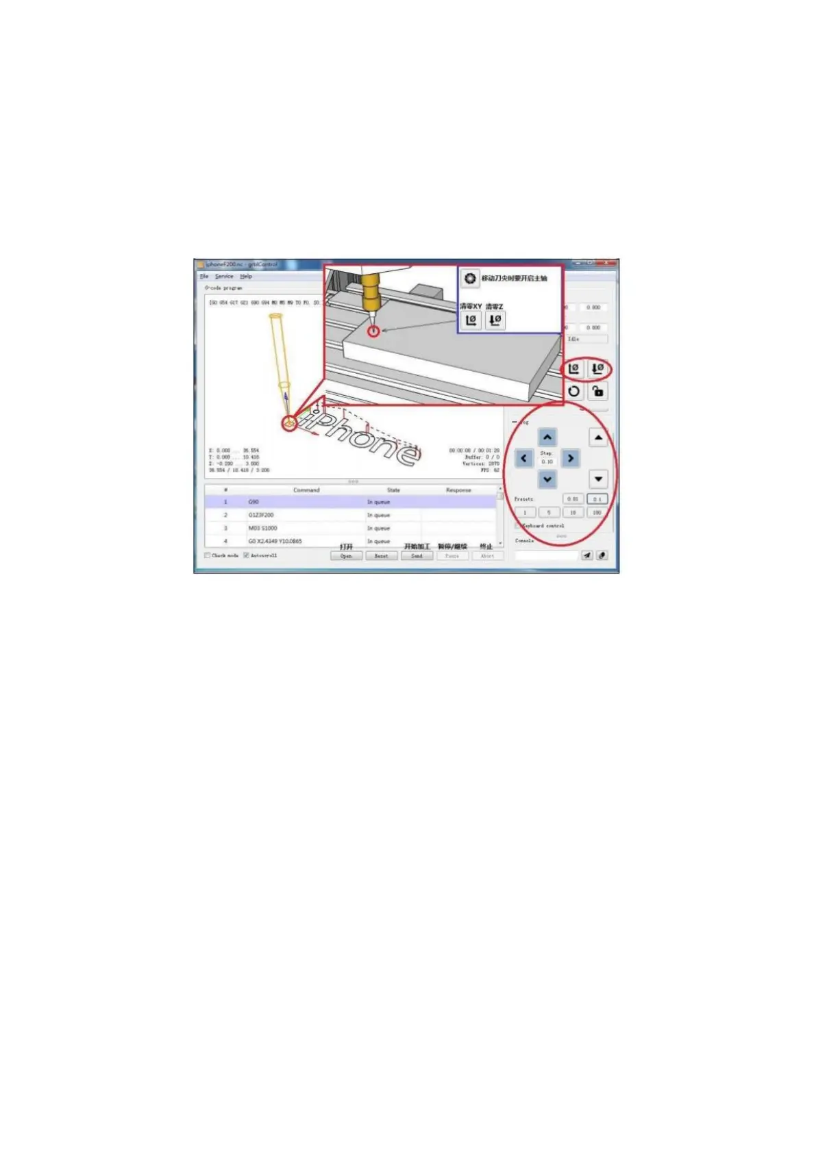 vágógépet a kívánt helyre, folytassa az XY és Z tengely koordináta nulla tisztázását. Ez a
