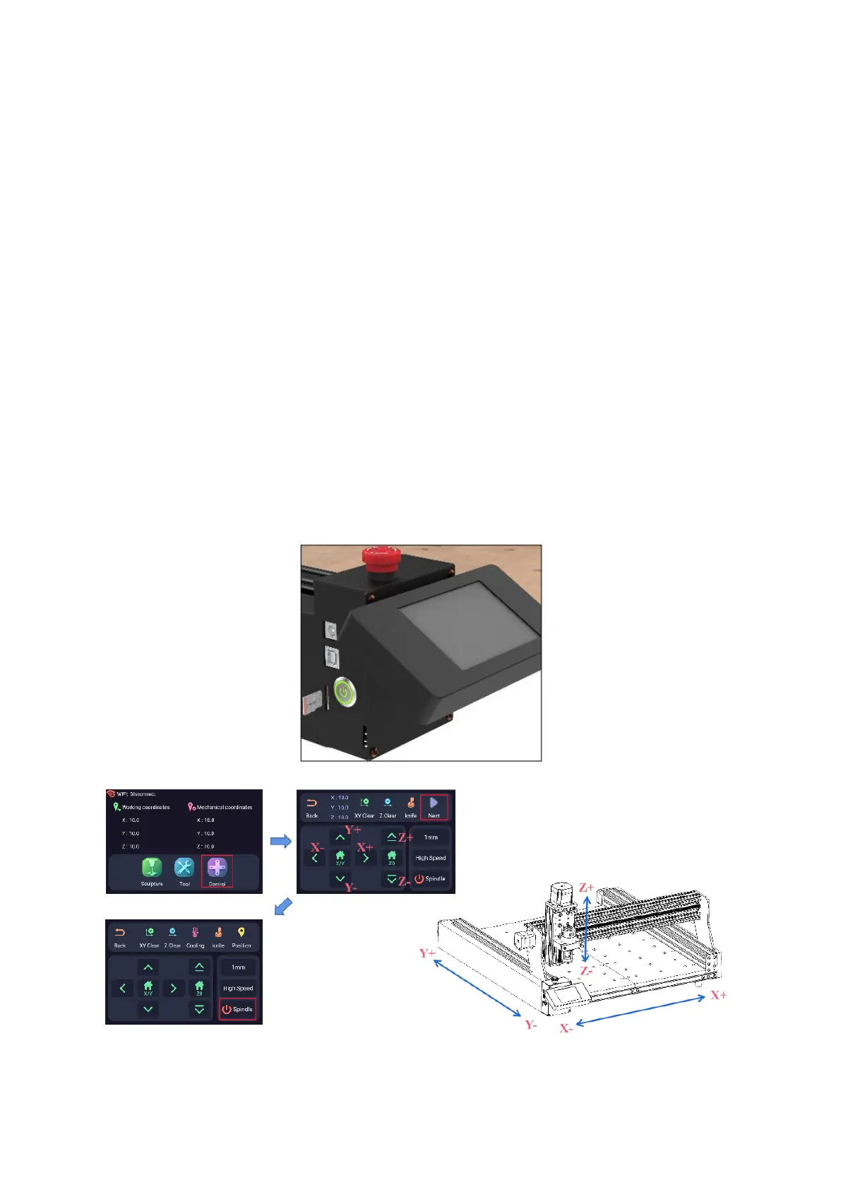 der Maschine fährt. Benutzen Sie die Funktionen XY Clear und Z Clear zum