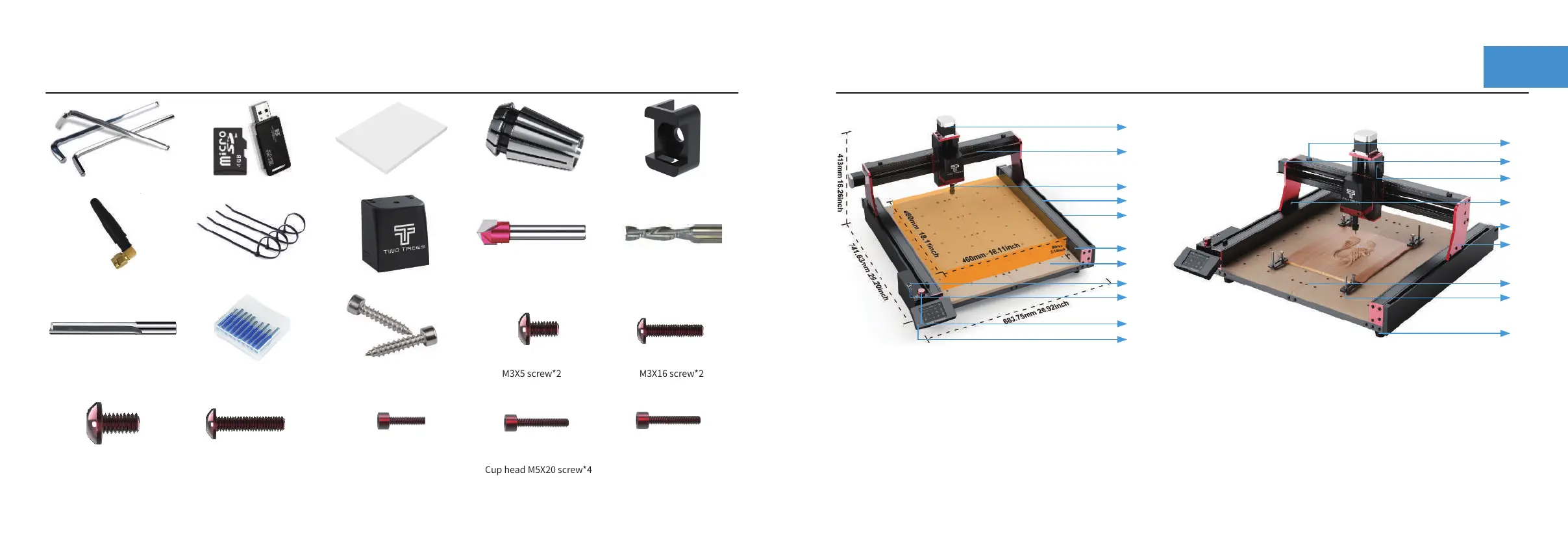 Hexagonal wrench*5 TF card*1 Card reader*1 Polypropylene sheet*1 ER-11 6MM collet*1