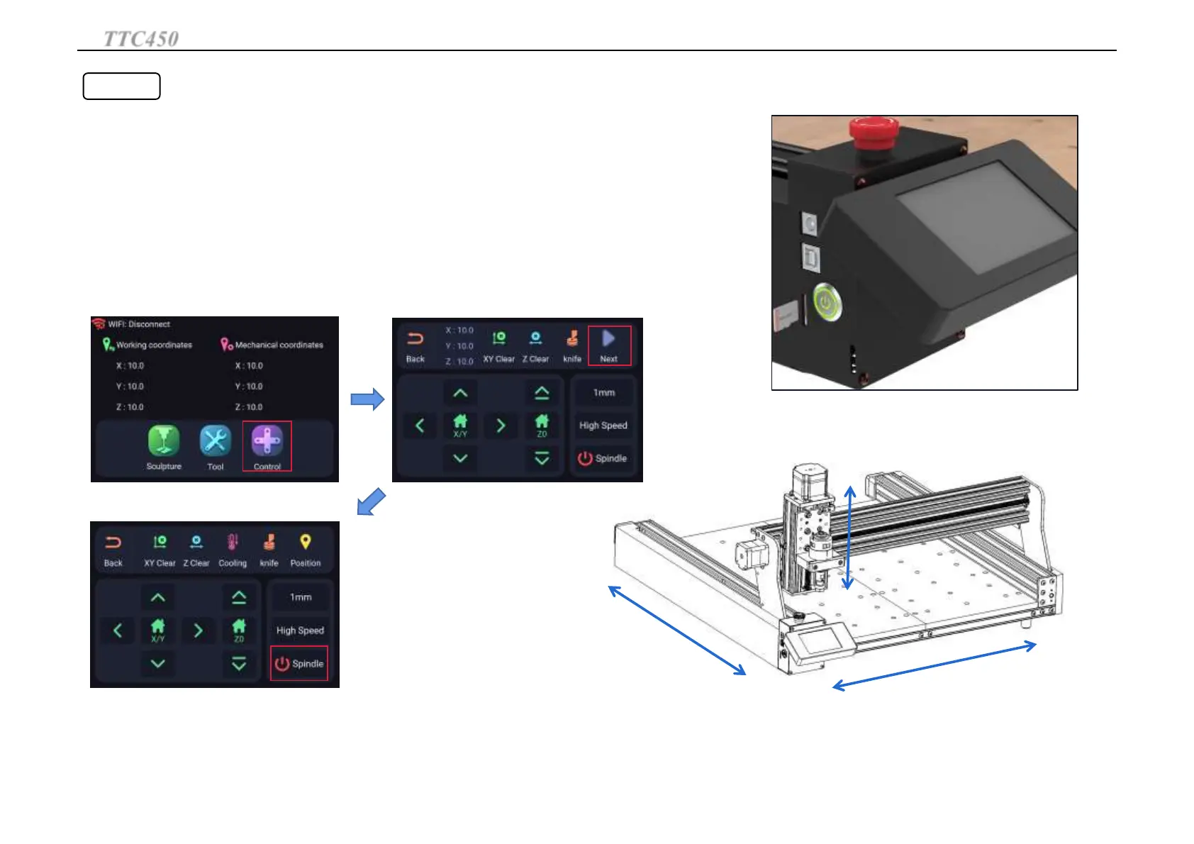Click "Spindle" to rotate the spindle. Click "Spindle" again to stop the spindle.