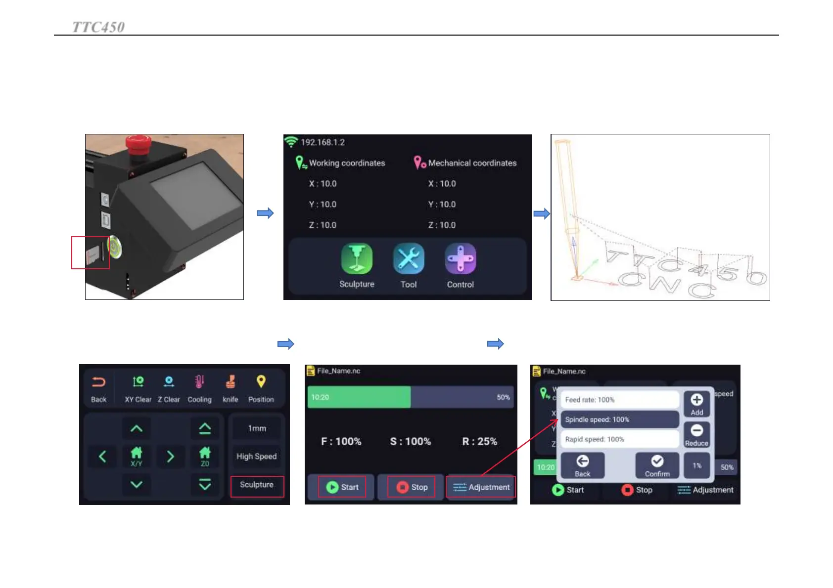 Click Sculpture button choose NC file Move the XYZ-axis to the origin.Click XY
