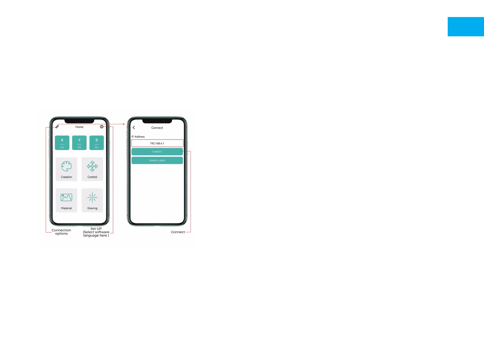 main board will send out the WIFI network with the name Laser_XXXXX (XXXXX refers to