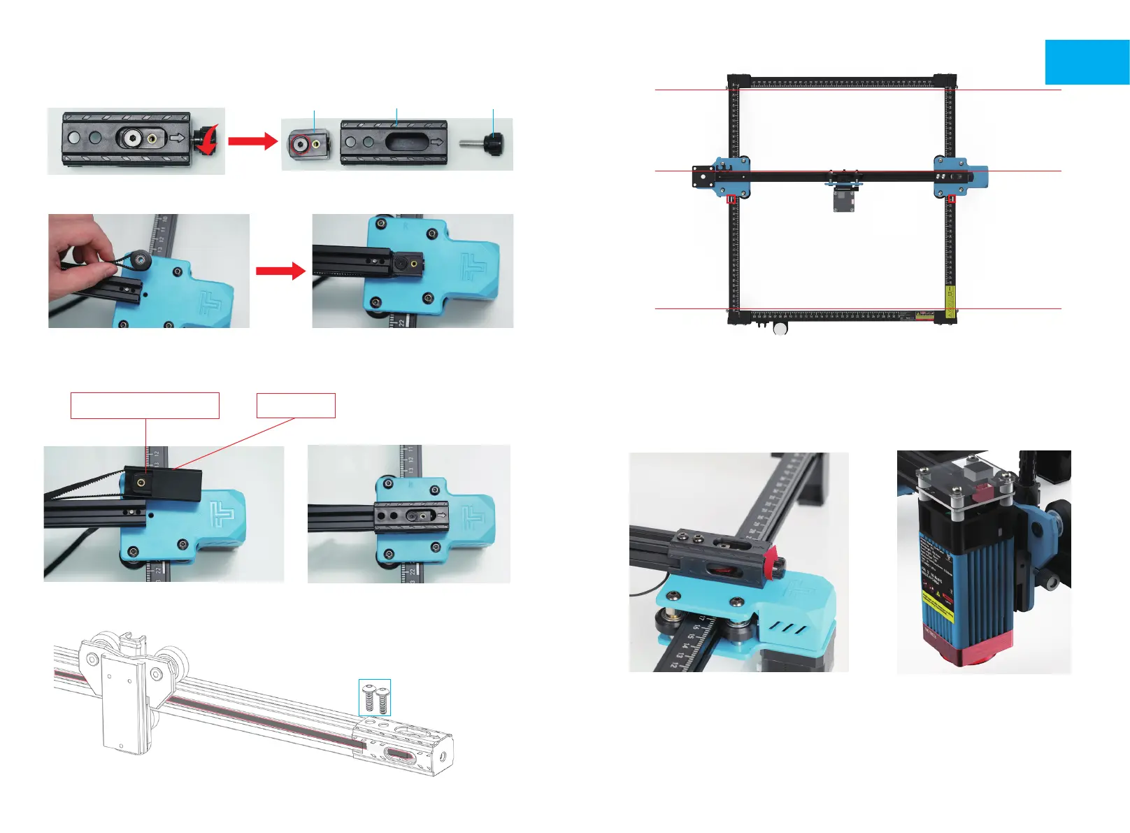 Hinweis: Achten Sie bei der Installation darauf, dass der X-Achsen-Balken parallel zu den vorderen und hinteren Balkenprofilen