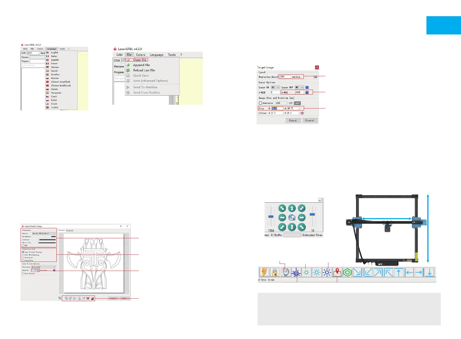 Gravurgeschwindigkeit, Gravurenergie und Gravurgröße zu konfigurieren.
