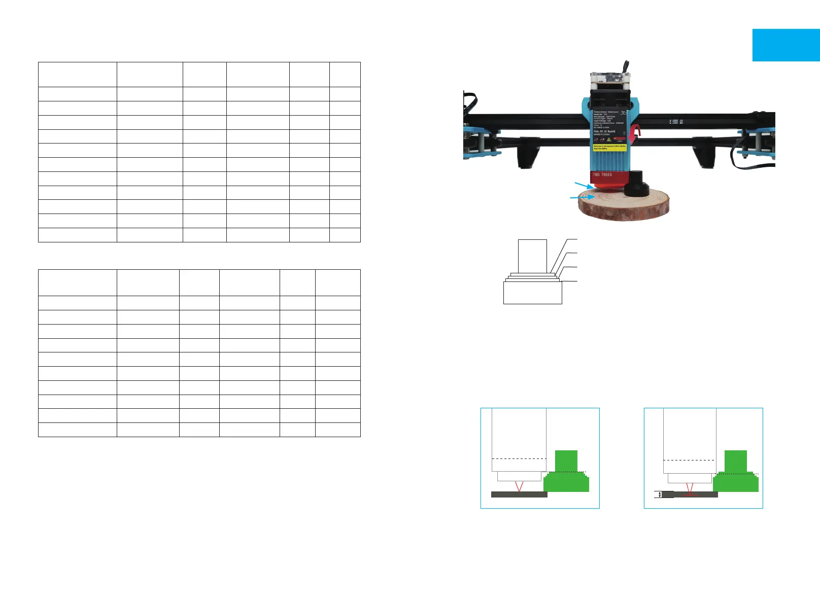 Перед резкой фокус должен находиться в середине разлома гравированного объекта, поэтому следует установить