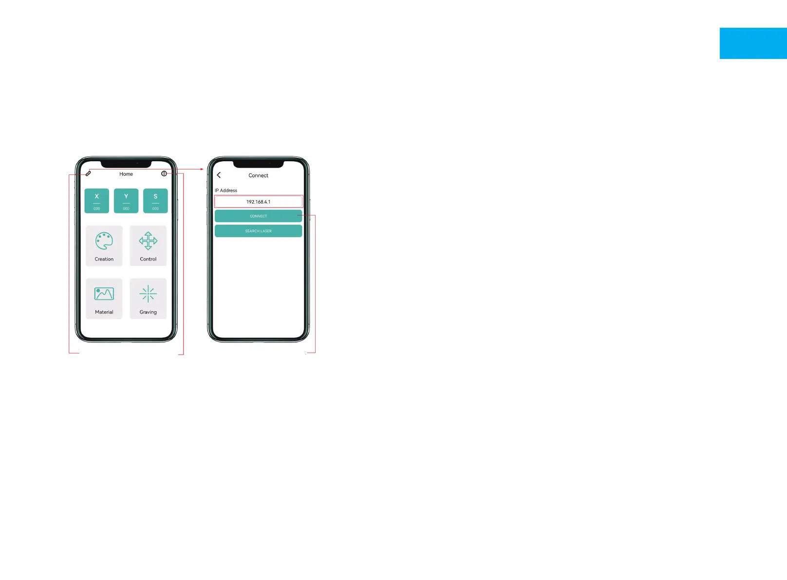 покинул завод. После включения машины главная плата будет посылать WIFI сеть с именем Laser_XXXXX (XXXXX