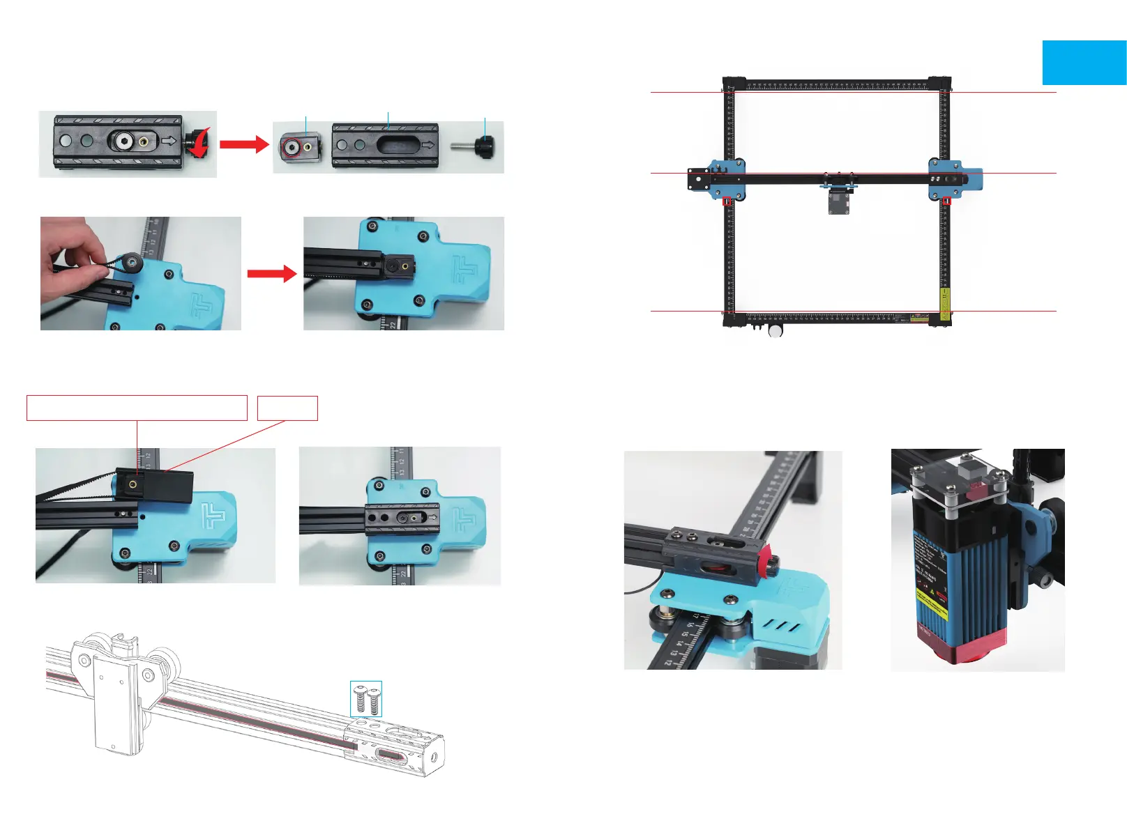 4. Adjust the X-axis beam to make sure it is parallel with the front