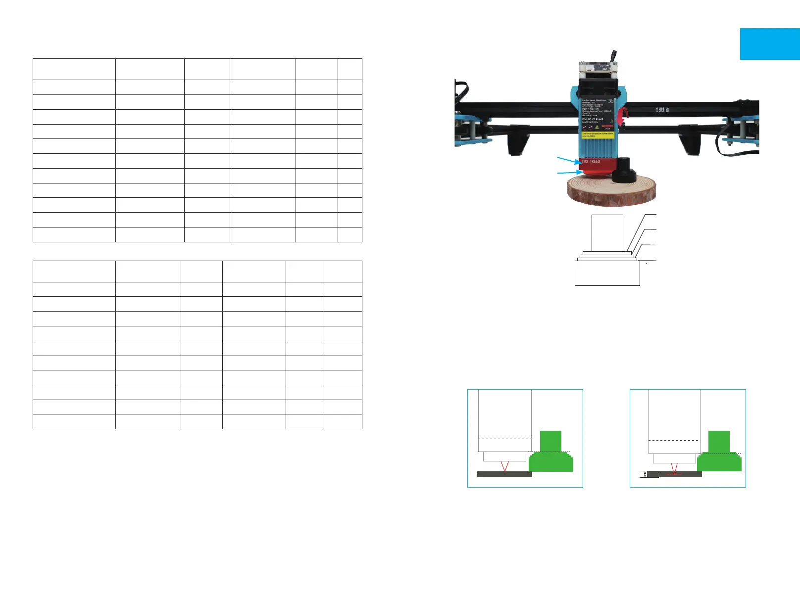 Focus adjustment before cutting: (Be careful of damage to the laser hood by impact)