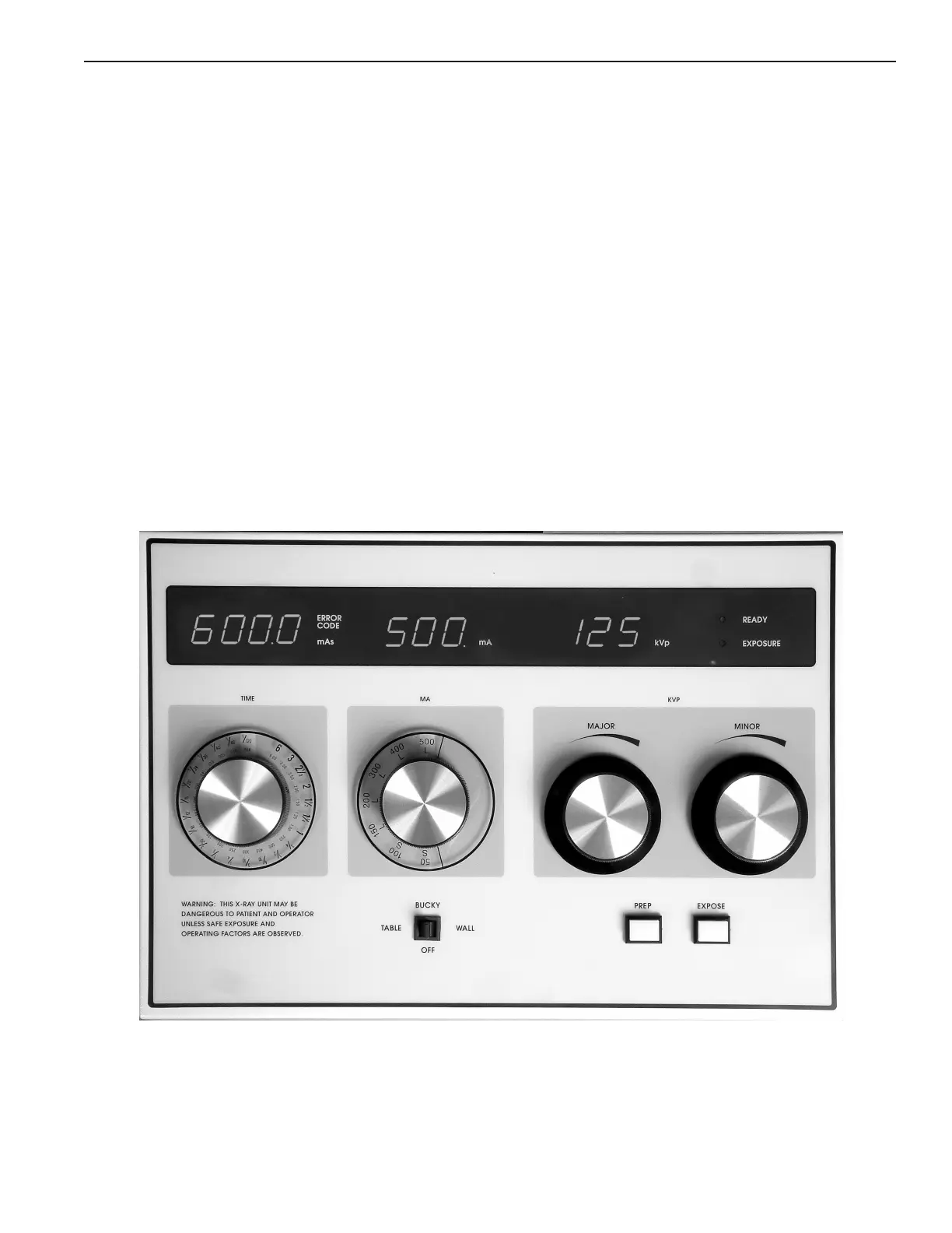 Technique factors are chosen by using simple selectors and displayed on LED readouts on the console.