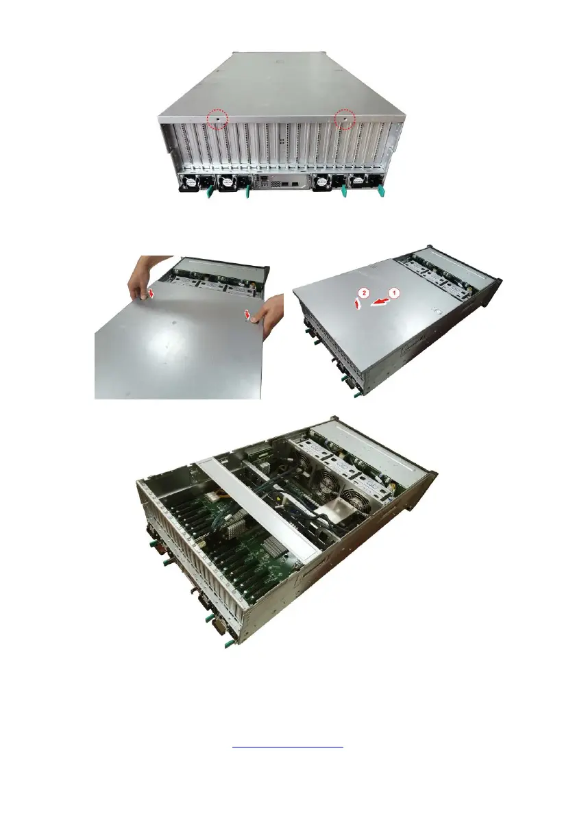 4. Press the two latch to pull the cover in the direction of the arrow to remove