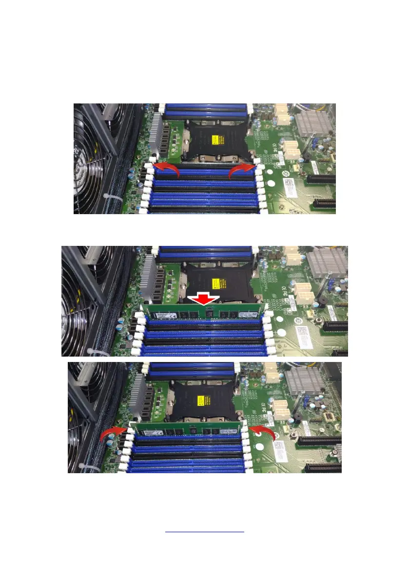 1. Press the memory slot locking levers in the direction of the arrows as shown in