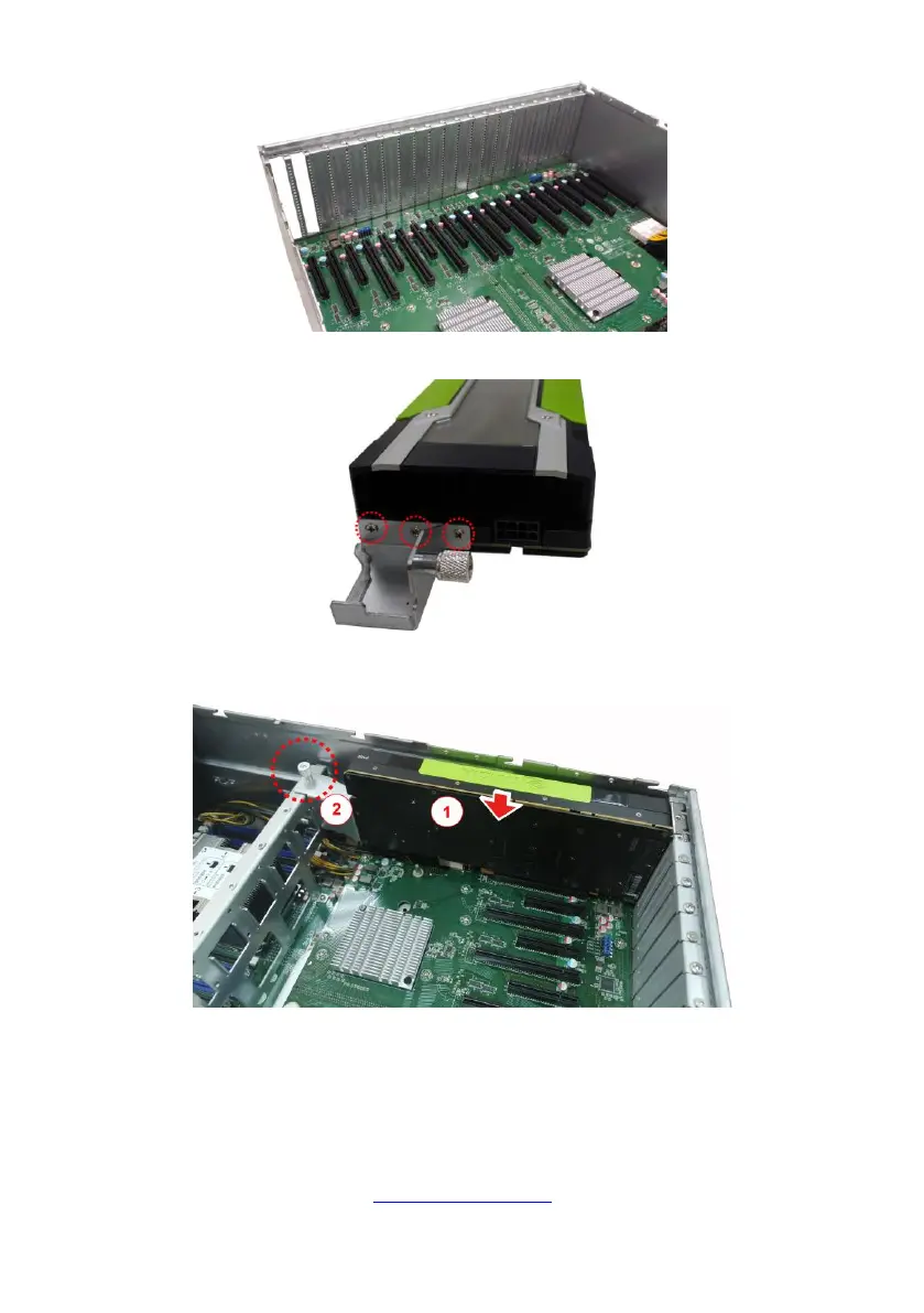 6. Insert the GPU card into the PCIE Gen. 3 slot and screw the GPU card to the