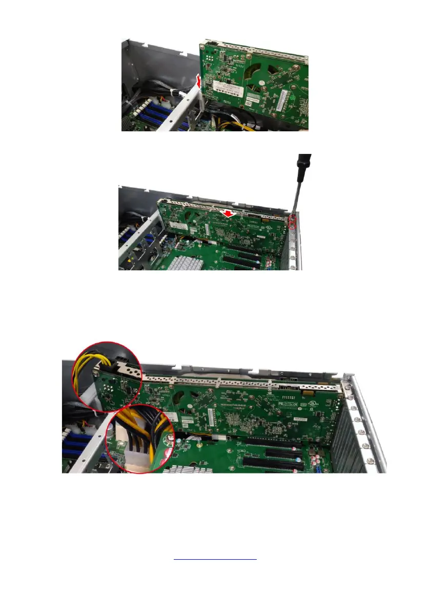 4. Connect the power cable to the expansion card and the motherboard.