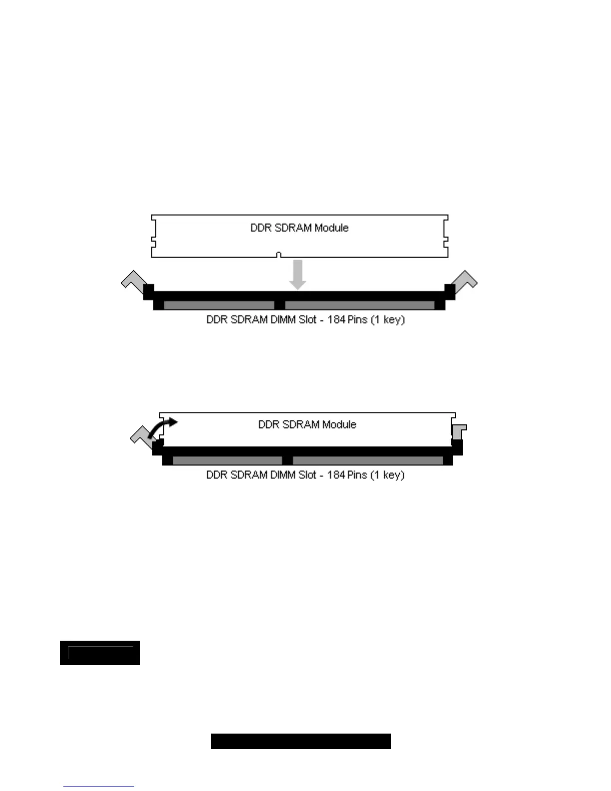 two keys and will not insert into DDR DIMM sockets. The method of installing memory modules is