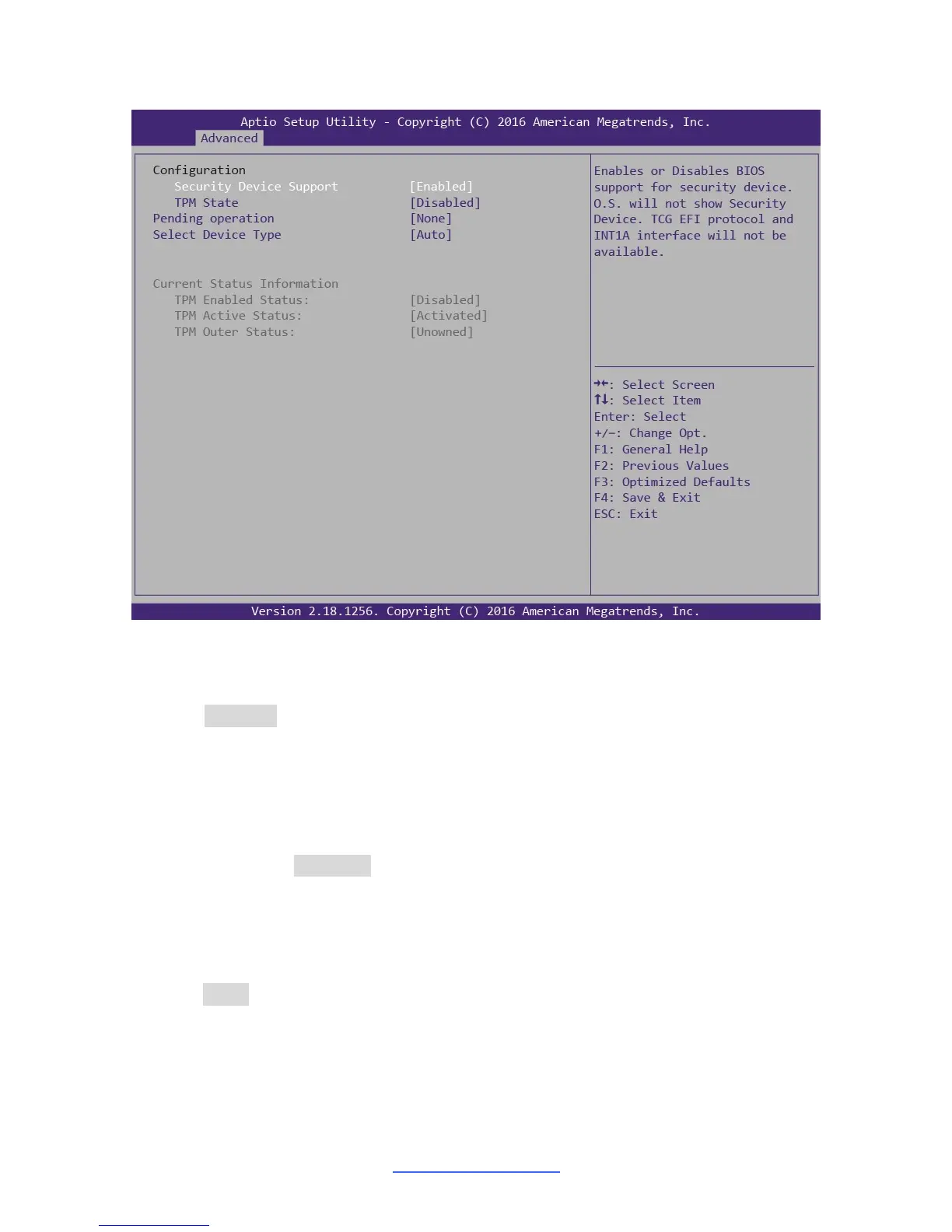 NOTE: Security Device Support Default is [Disabled]