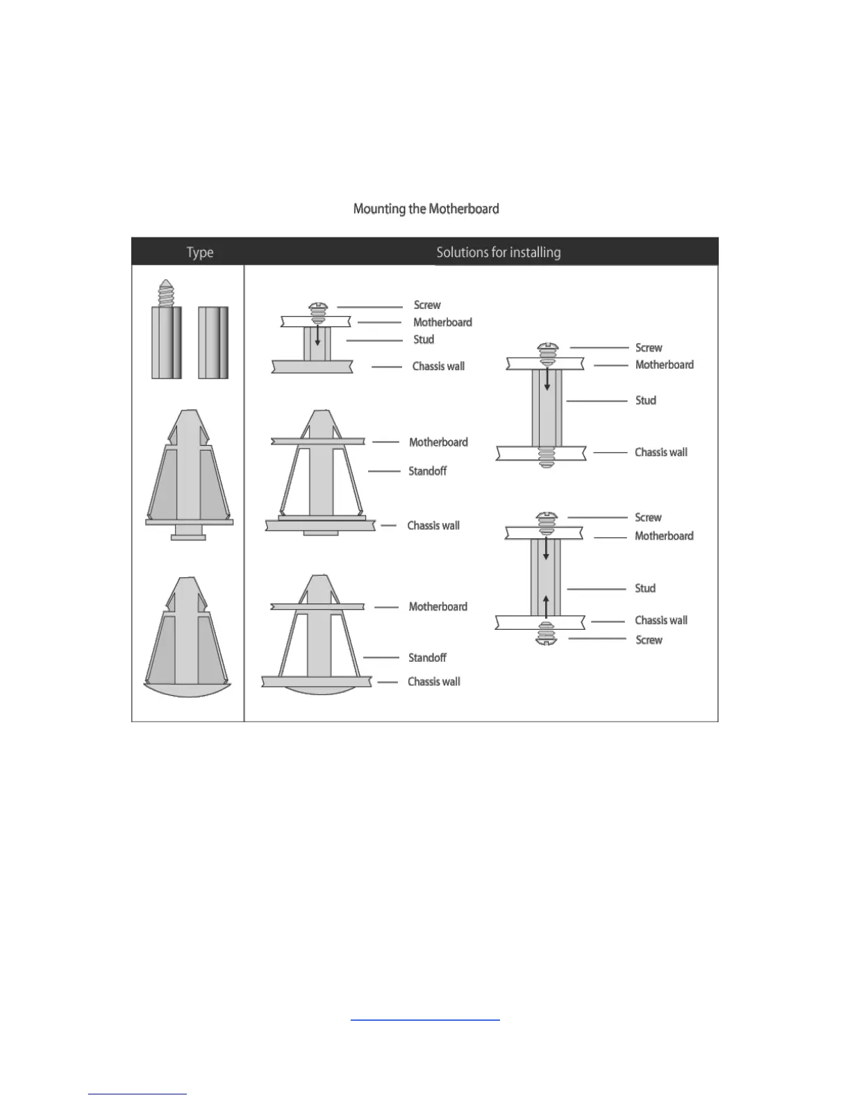 Below is a chart detailing what the most common motherboard studs look like and