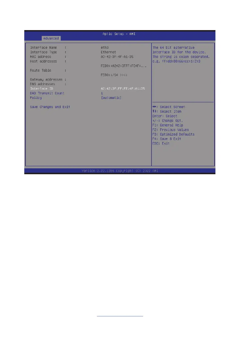 Save Changes for interface ID, DAD transmit count, policy, and data in advanced