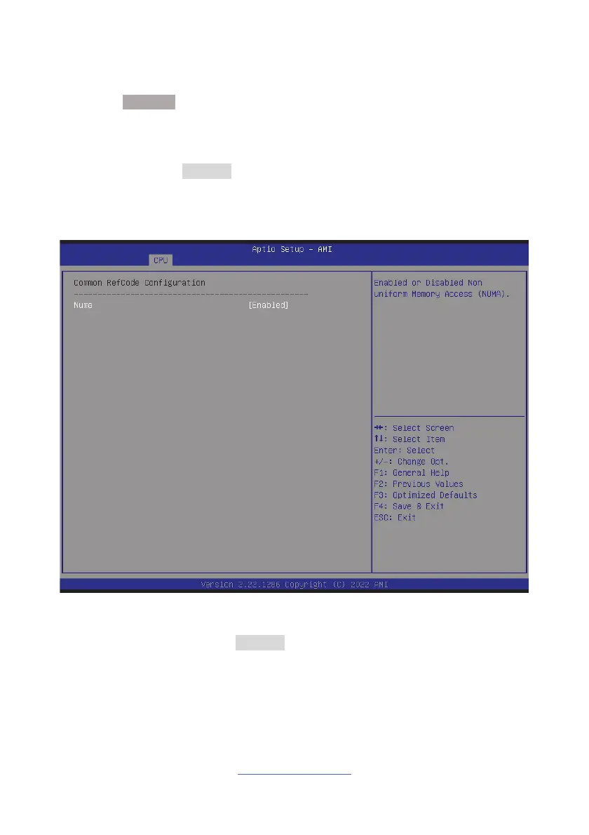 Enabled or Disabled Non uniform Memory Access(NUMA).