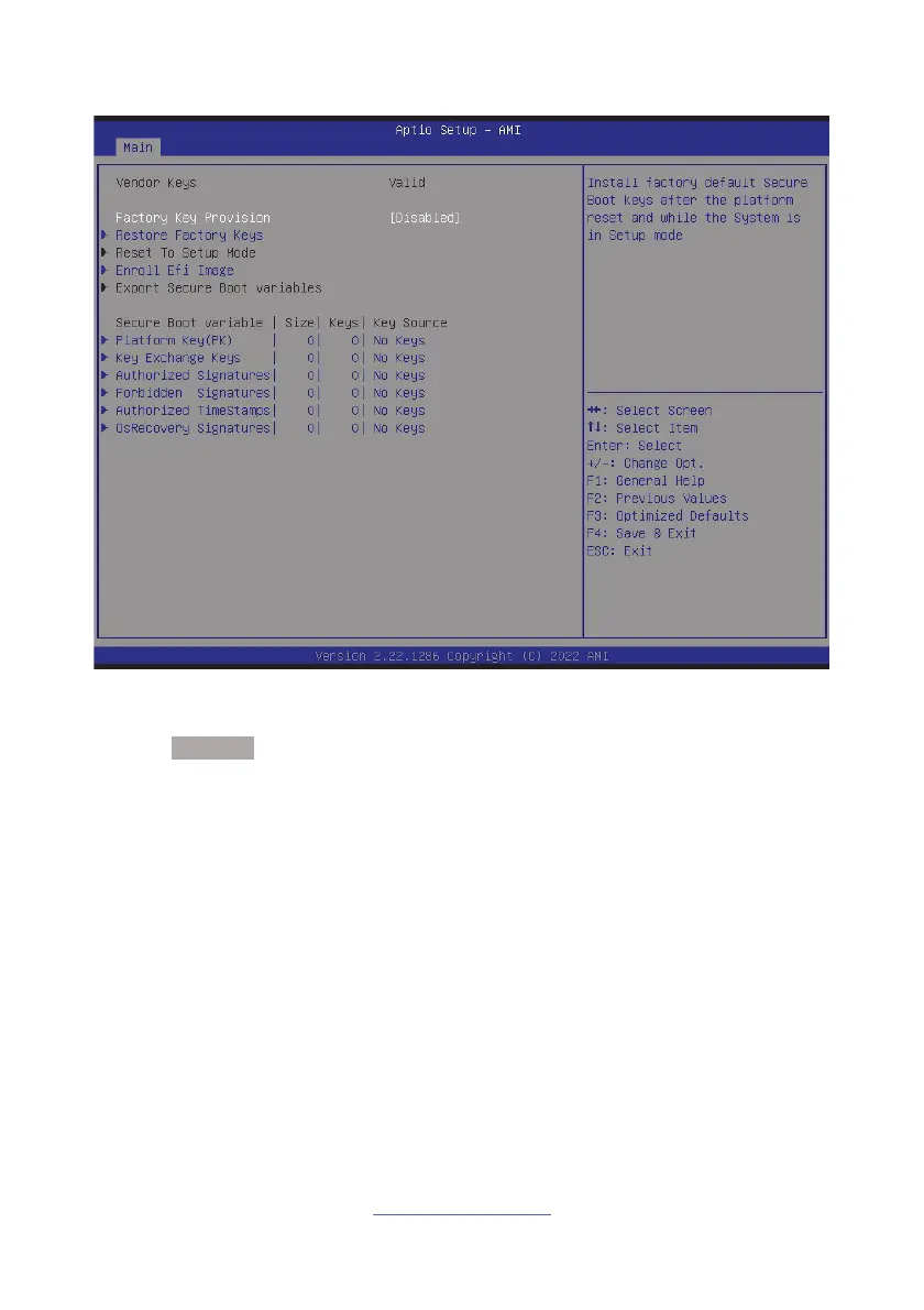 Allow to provision factory default Secure Boot keys when System is in Setup Mode.