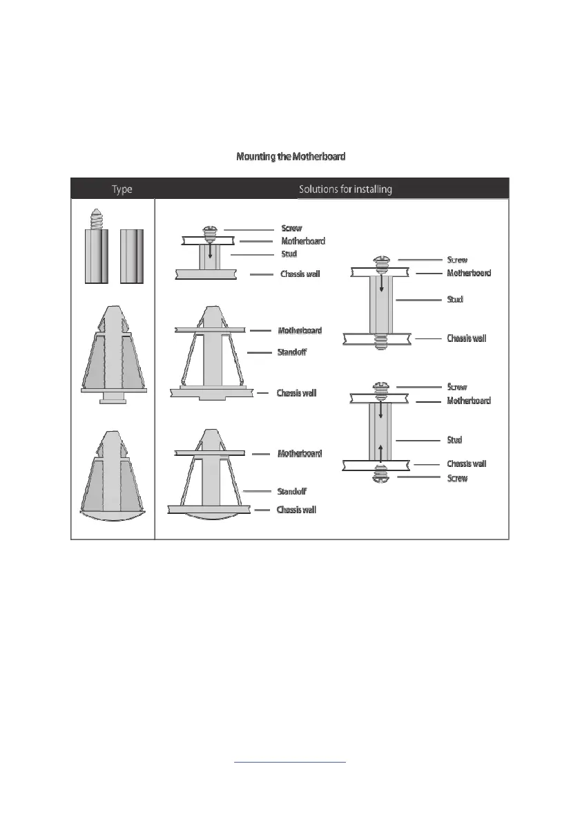 Below is a chart detailing what the most common motherboard studs look like and