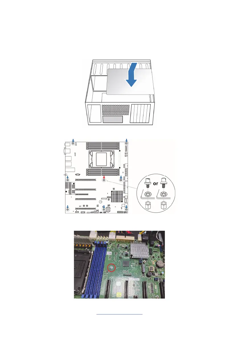 2. Attach the server board to the chassis by securing the standoff (marked with