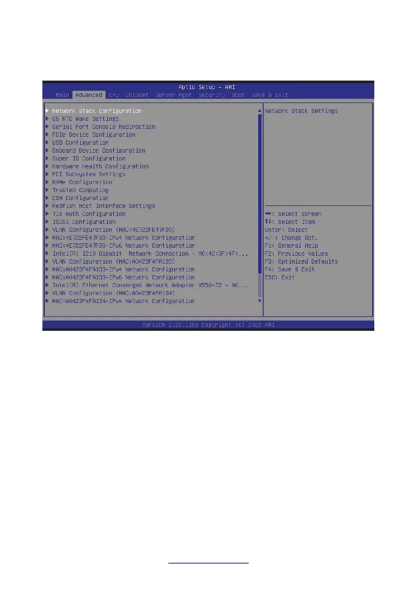 NOTE: This is a sample screenshot of the Advanced Menu. The HII network drivers