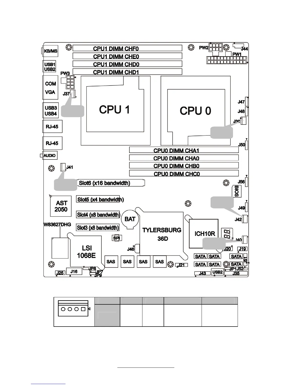 J36/J37/J40/J41/J42: 4-Pin FAN Connector