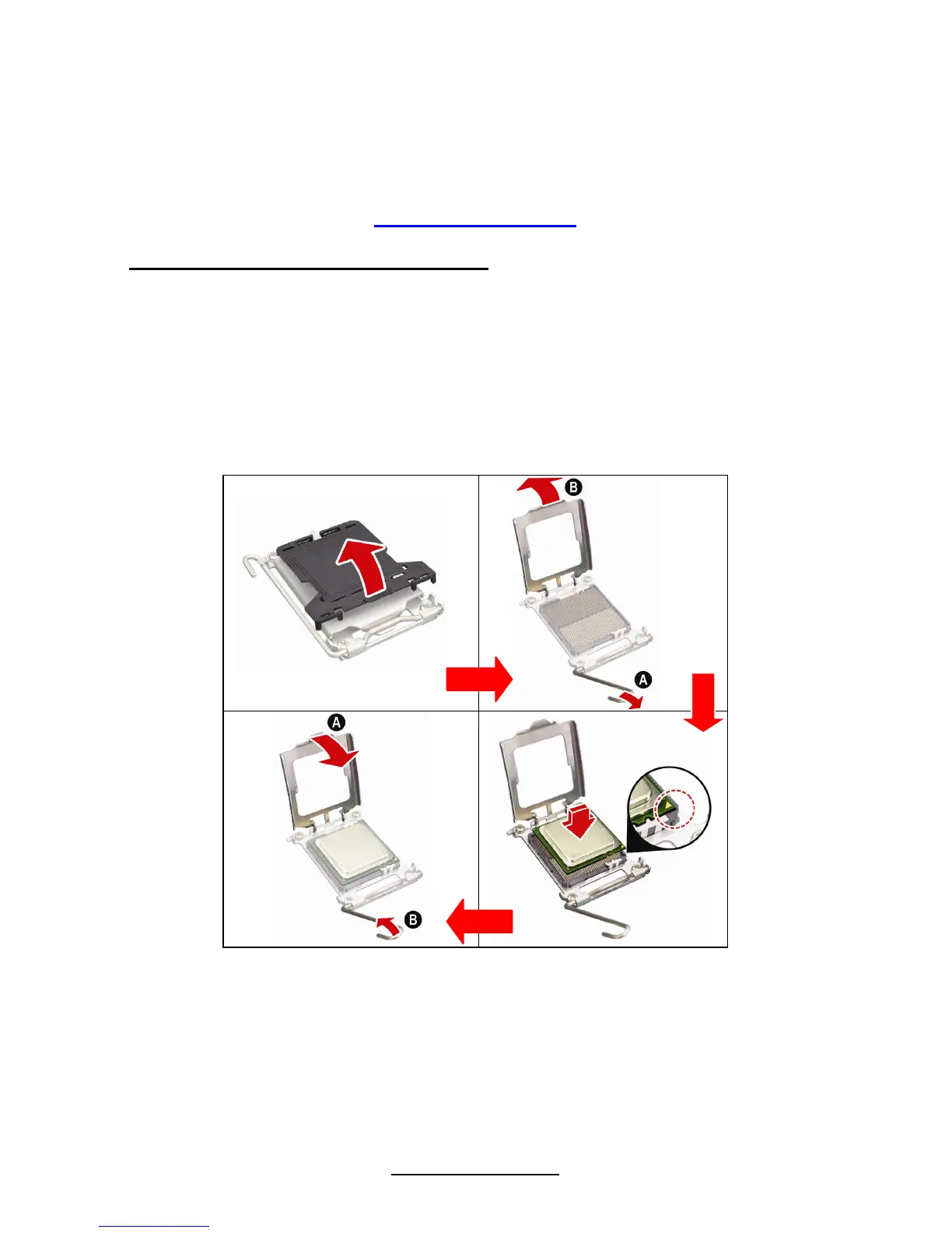 Step 2: Pull the CPU lever up to unlock the CPU socket (A). Then open the