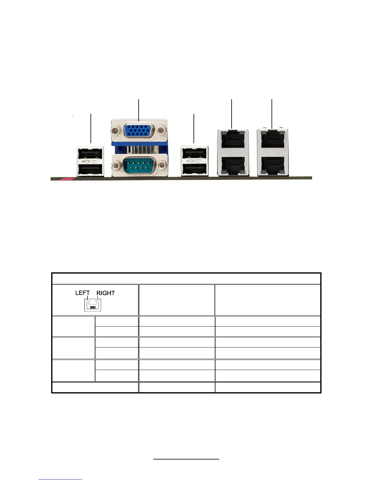 Onboard LAN LED Color Definition