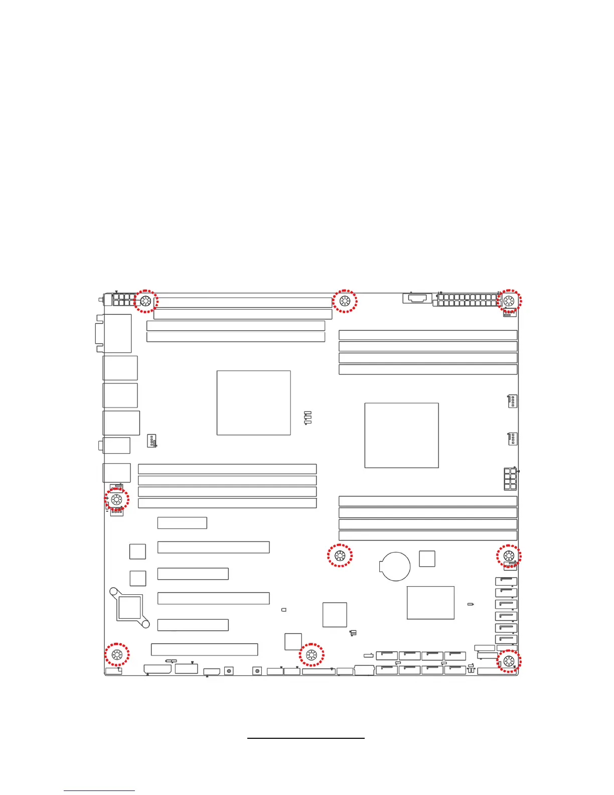 Place 9 screws into the holes indicated by circles to secure the mother board to