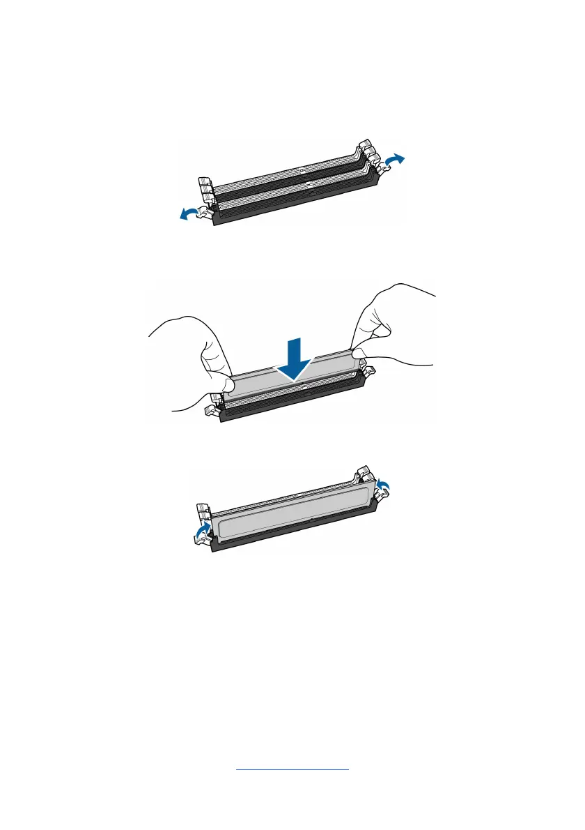2. Insert the memory module firmly into the socket by gently pressing down until