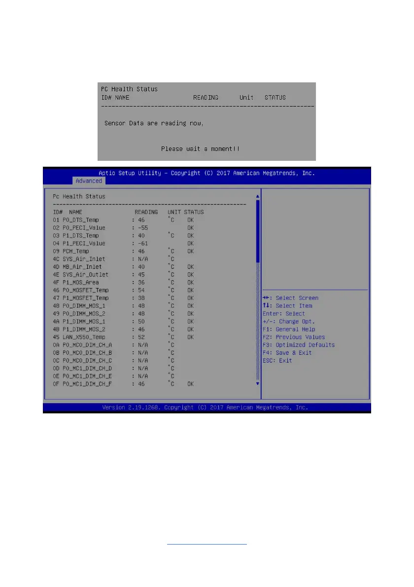 When you enter the Sensor Data Register Monitoring submenu, you will see the