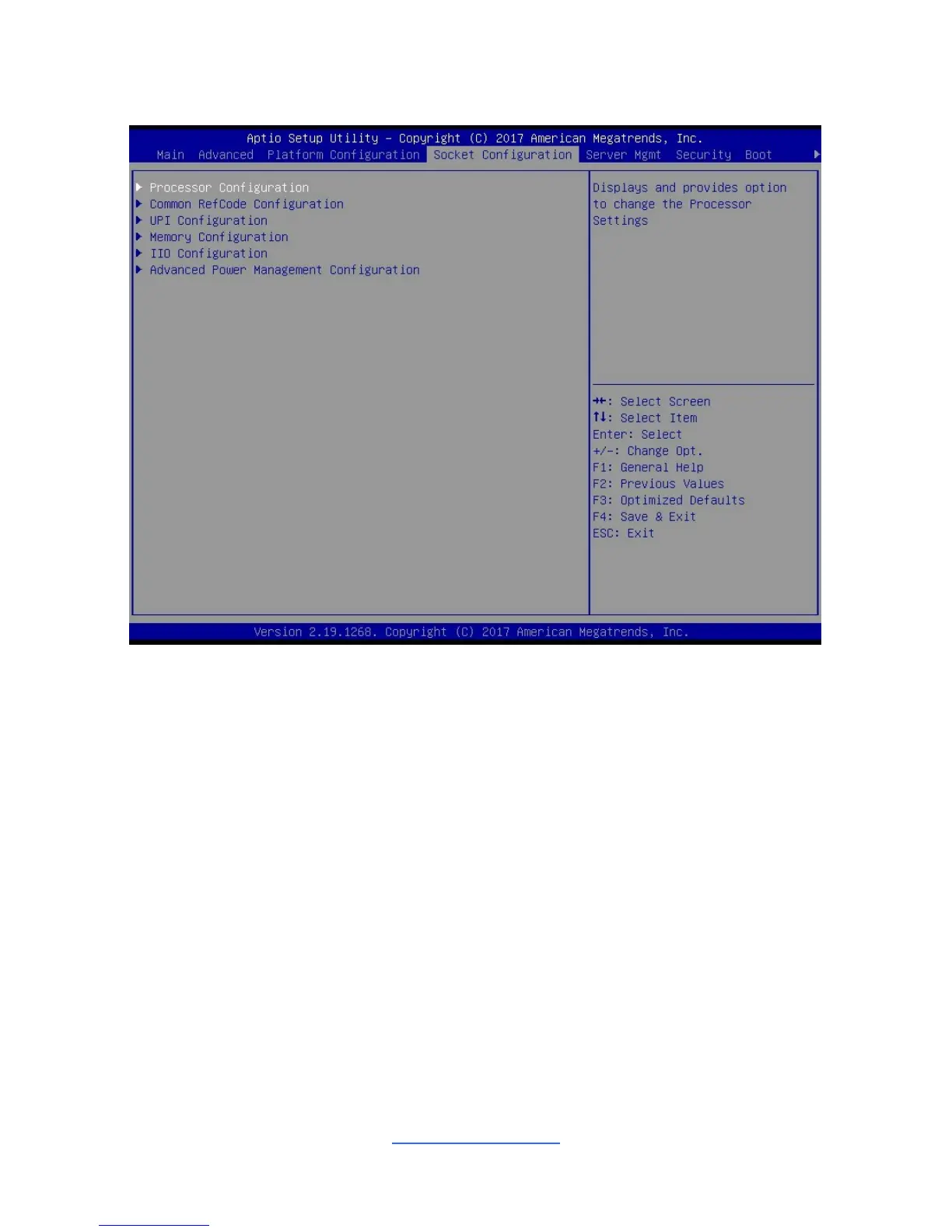 Displays and provides option to change the Processor Settings.