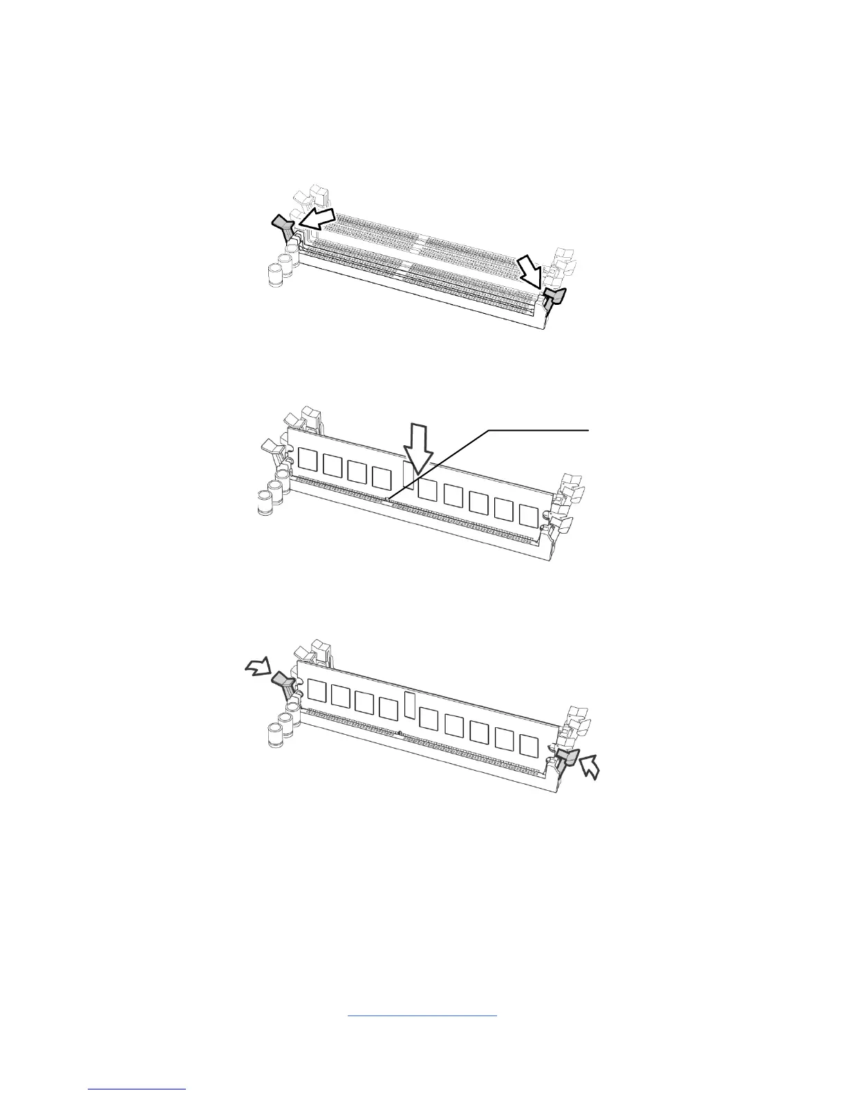2. Align the memory module with the socket. The memory module is keyed to fit