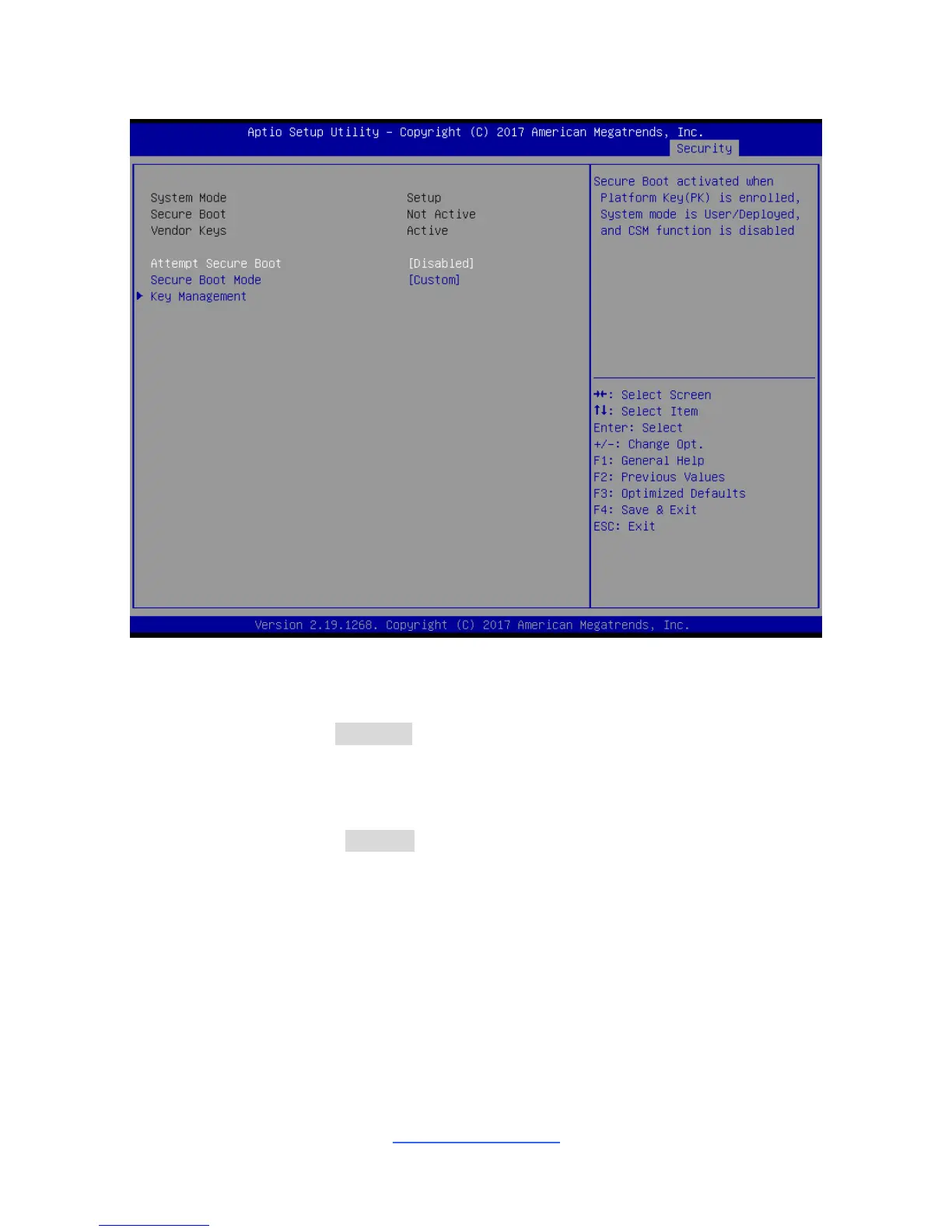 Secure Boot mode selector. ‟Custom‟ mode enables users to change Image