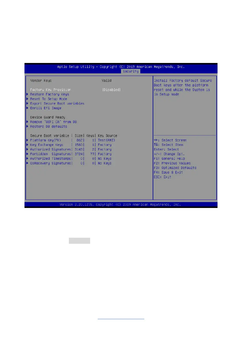 Force System to User Mode. Install Factory Default Secure Boot key databases.