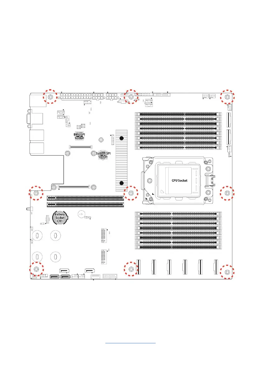 the screw holes of the motherboard to the studs inside the case. If there are any