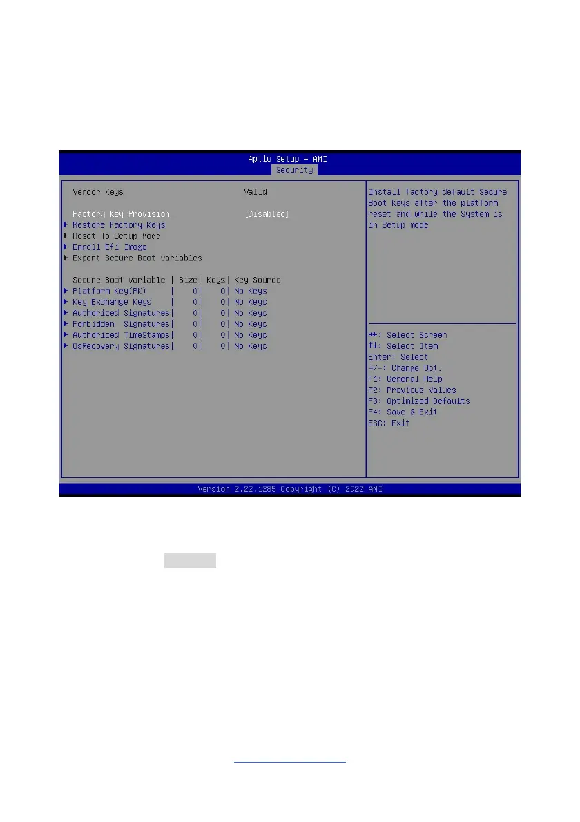 Force System to User Mode. Install Factory Default Secure Boot key databases.
