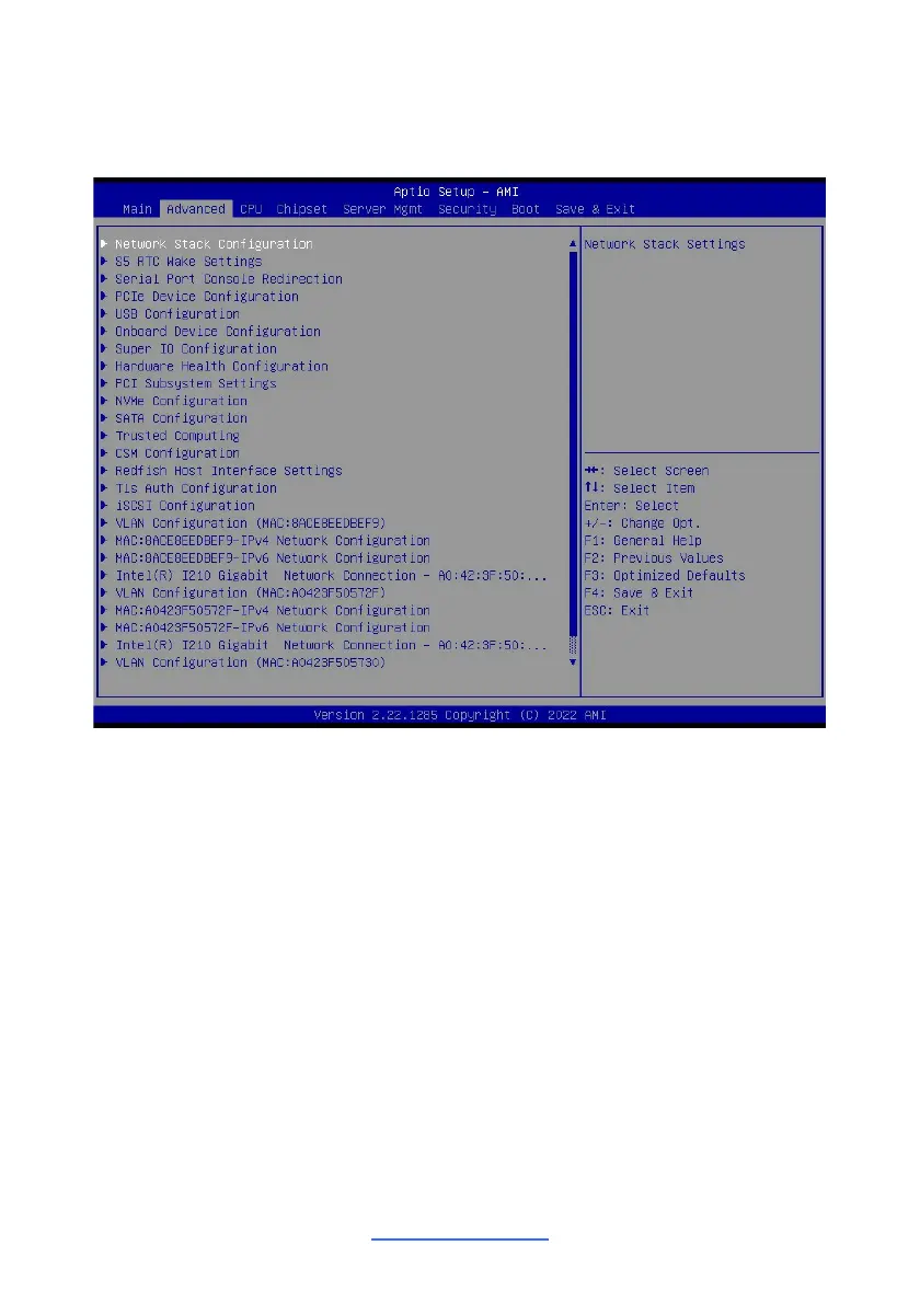 NOTE: This is a sample screenshot of the Advanced Menu. The HII network drivers