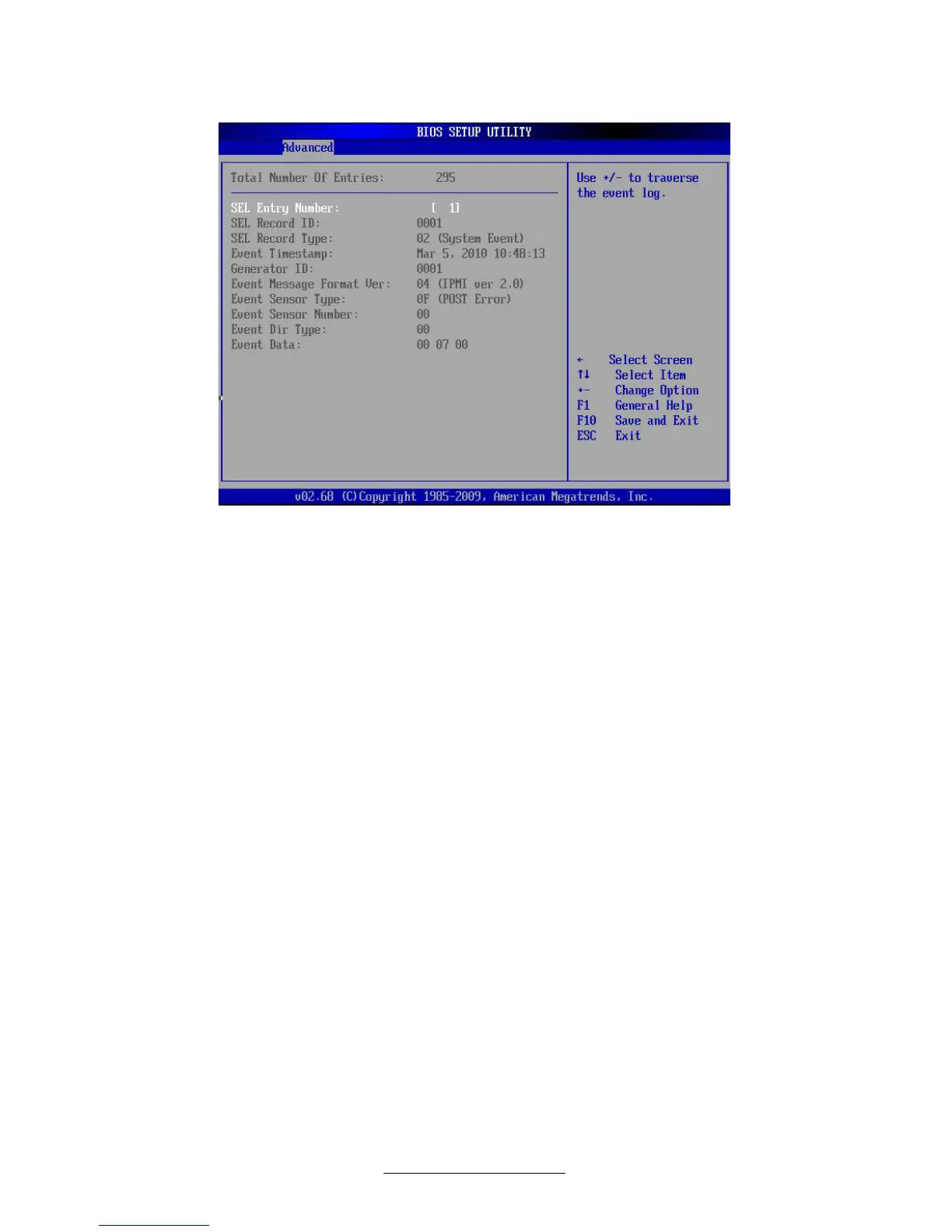 3.7.6.1 View BMC System Event Log Sub-Menu