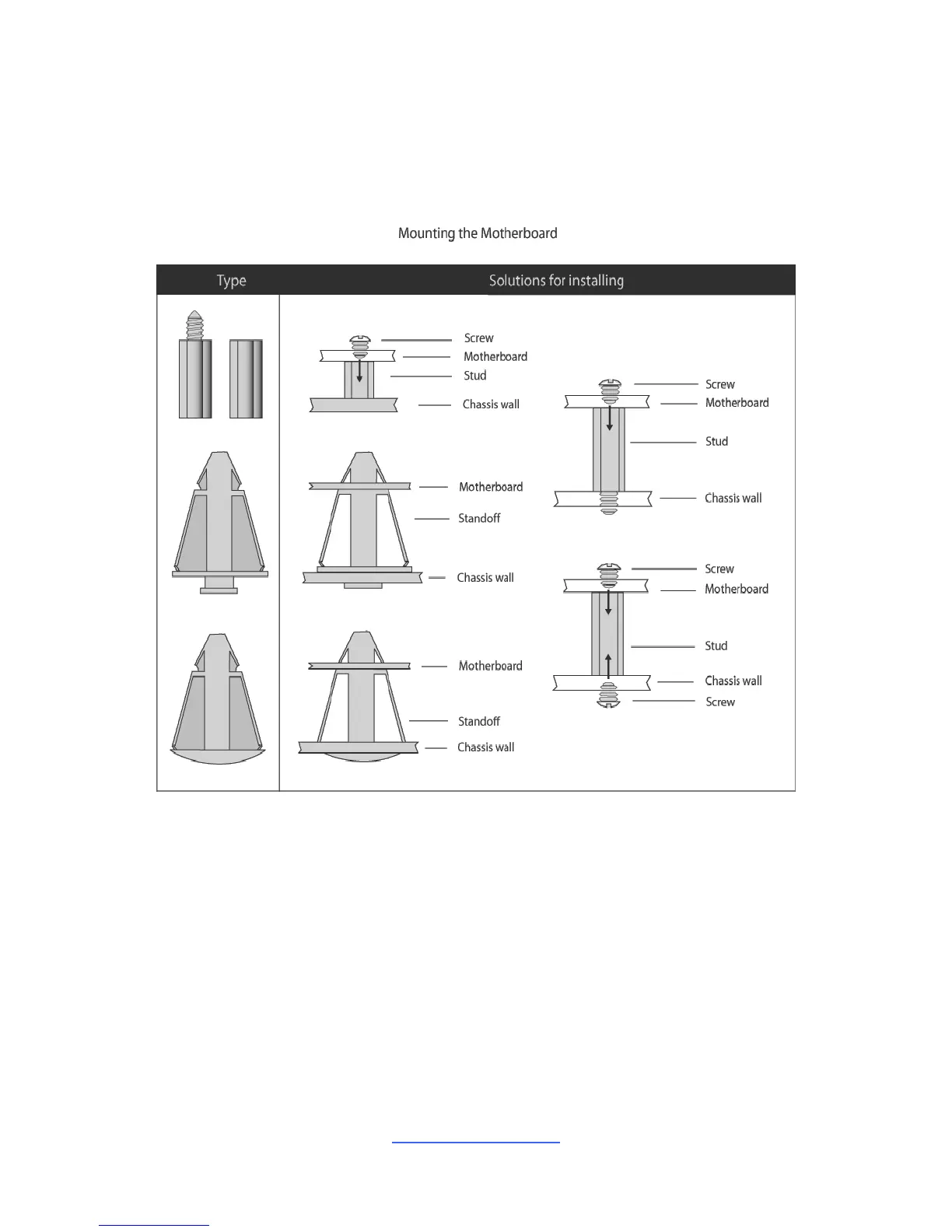 Below is a chart detailing what the most common motherboard studs look like and