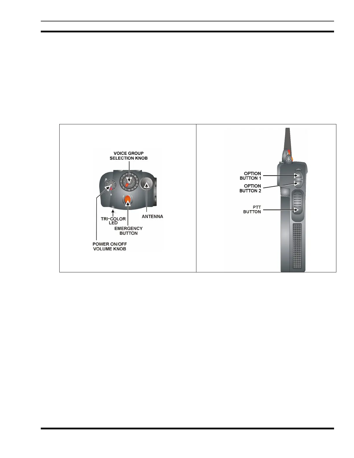 Figure 10-1). Push-To-Talk and option buttons are mounted on the side (Figure 10-1). The front mounted