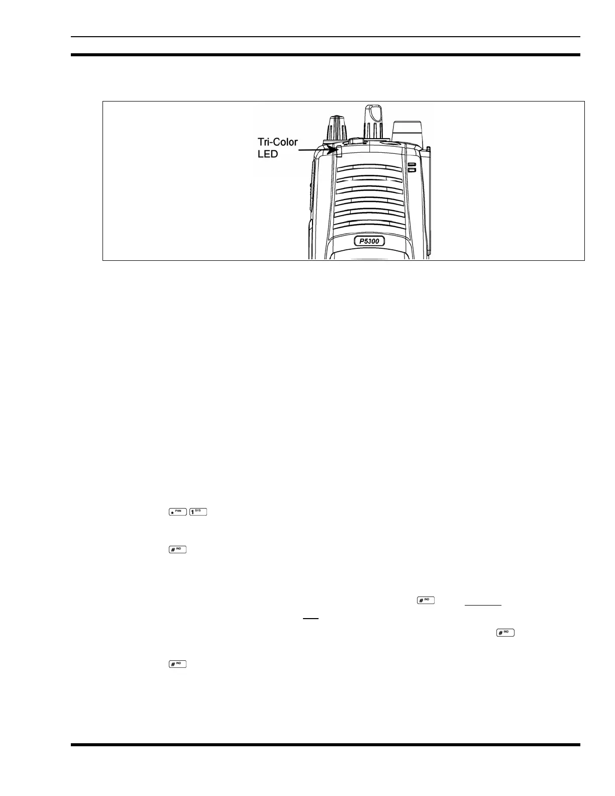 The Tri-Color LED changes color to indicate radio status and is visible from both the front and top of the