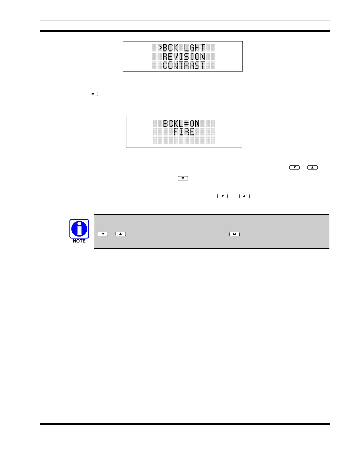 Figure 9-8: Backlight Menu Display