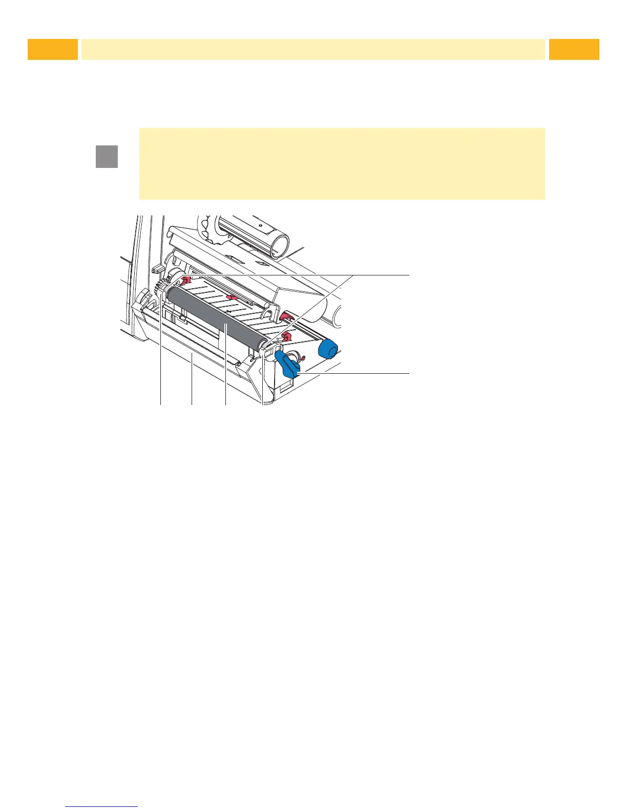 1. Turn lever (2) counterclockwise to open printhead.