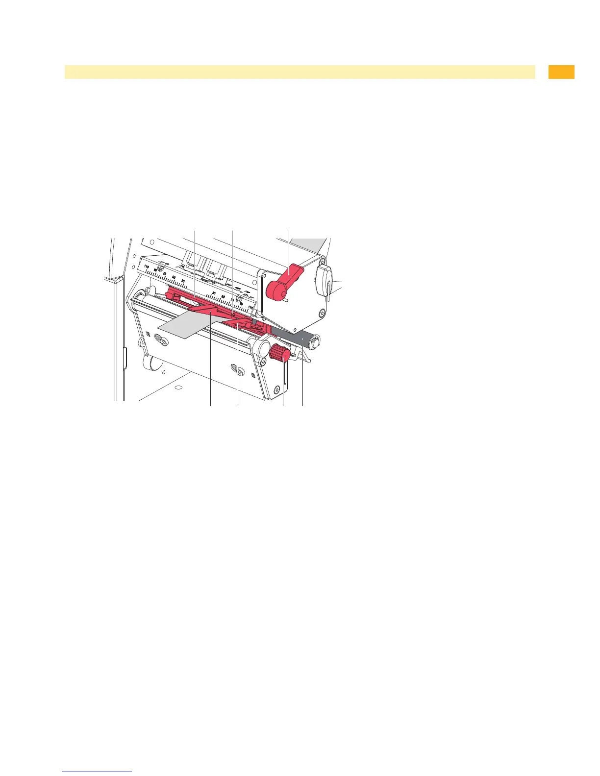 the label sensor retainer. When the printer is switched on, a yellow LED illuminates the sensor position.