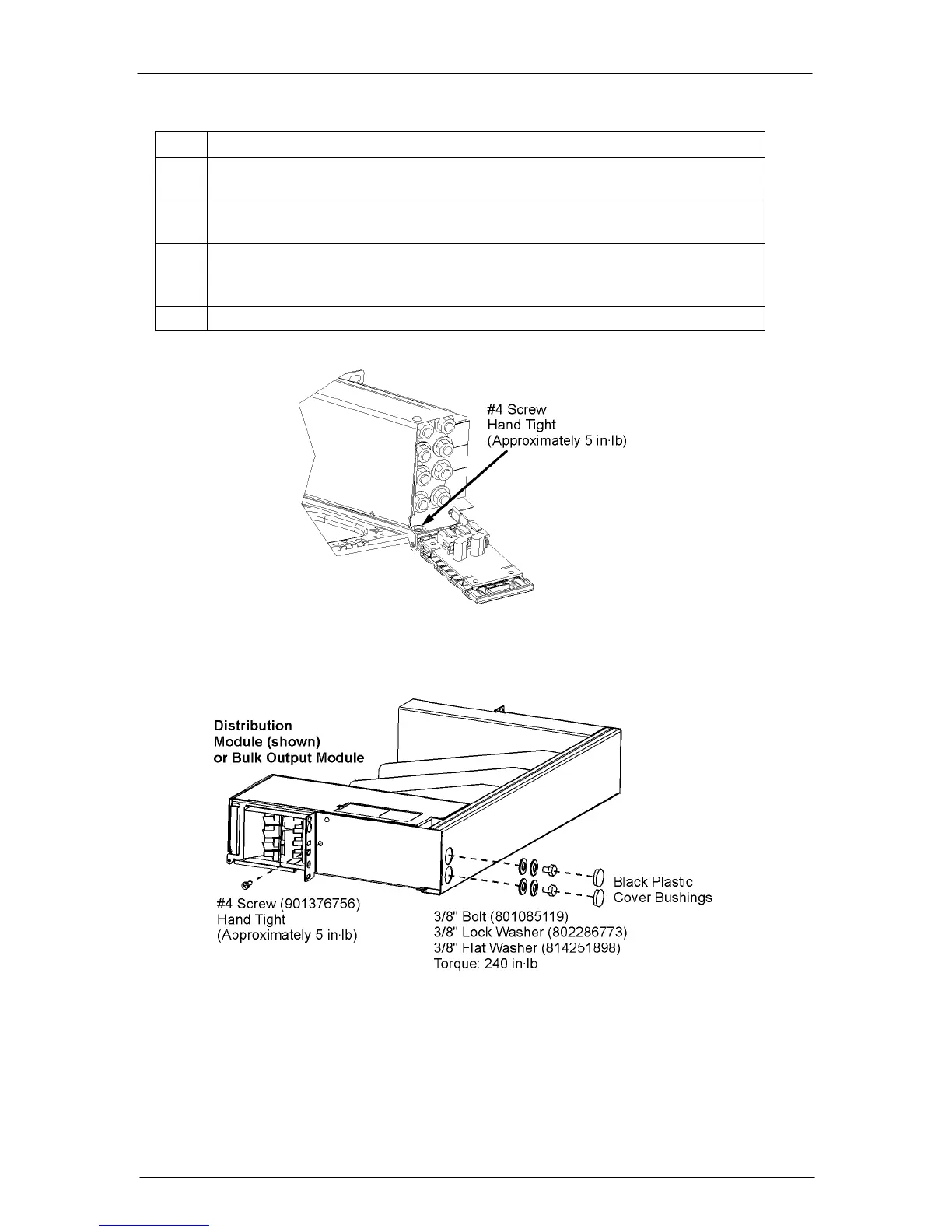 8. Insert one #4 Screw inside the left side of the Bulk Output Module, hand tight