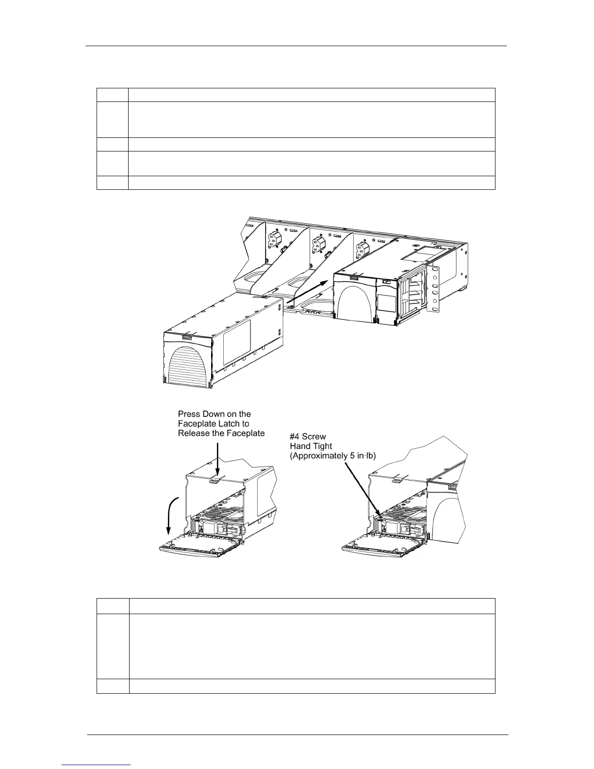 2. Press down on the faceplate latch and open the faceplate. See Figure 5-16.