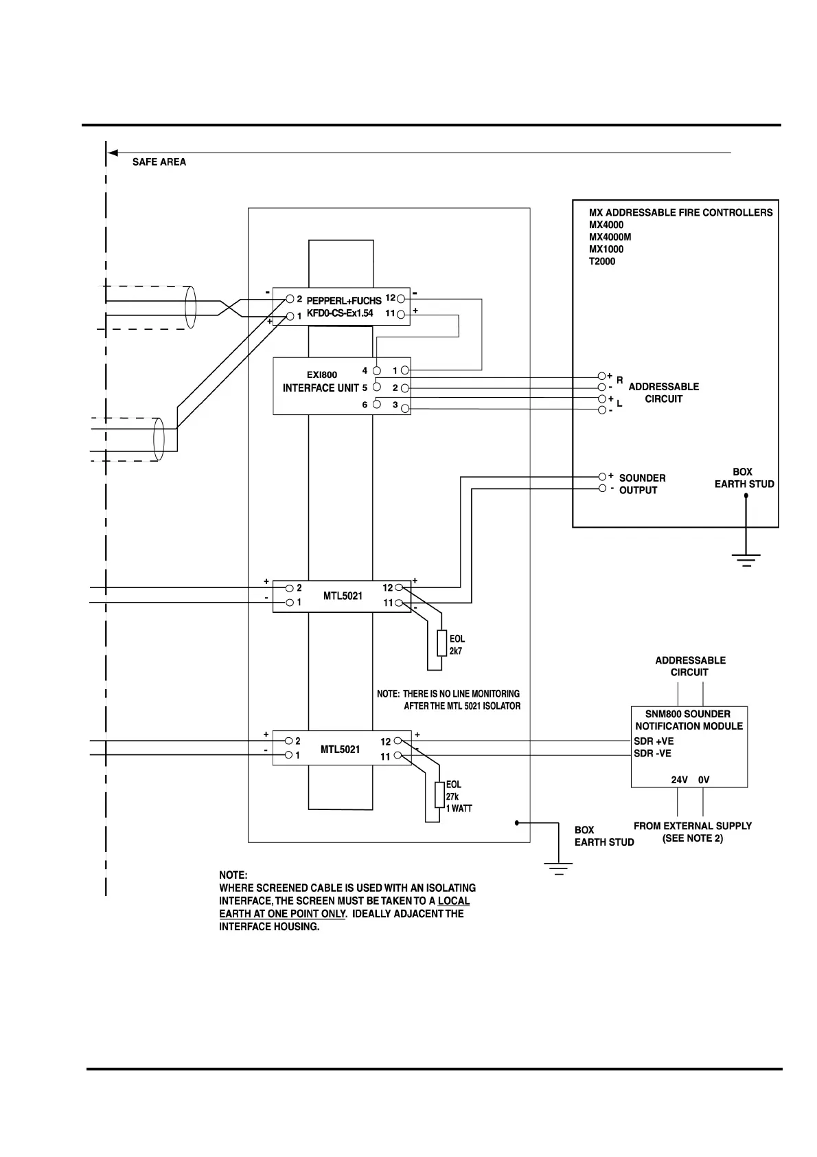 Fig. 5b) I.S. Interconnection Diagram to MX Addressable Fire Detection Systems